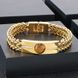 Bracciale da uomo in acciaio al titanio con targhetta curva intarsiata in pietra occhio di tigre con catena reversibile e ciondolo Hip Hop Dia Personality