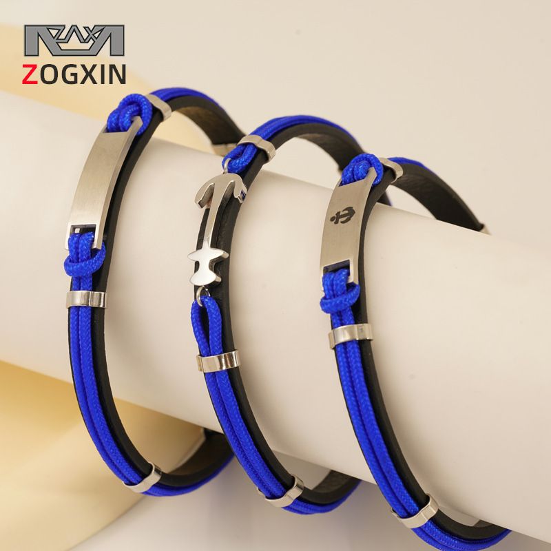 Bracciale intrecciato in acciaio al titanio con ancora per uomo e donna, cordino in pelle alla moda e versatile, cinturino resistente allo sbiadimento