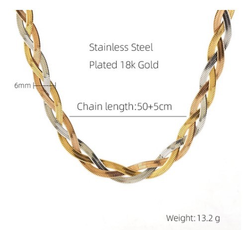 Bracciale intrecciato in acciaio al titanio per donna, semplice e versatile catena a tre colori, collana alla moda e resistente allo sbiadimento
