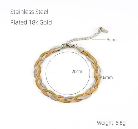 Braided Titanium Steel Bracelet for Women, Simple Versatile Three-Color Blade Chain, Fashionable Non-Fading Necklace