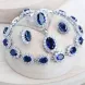 Bracciale Orecchini Collana Argento Donna Sposa Blu Zirconia Bigiotteria Fine Jewellery Anelli di Nozze Bracciali Ciondolo Set