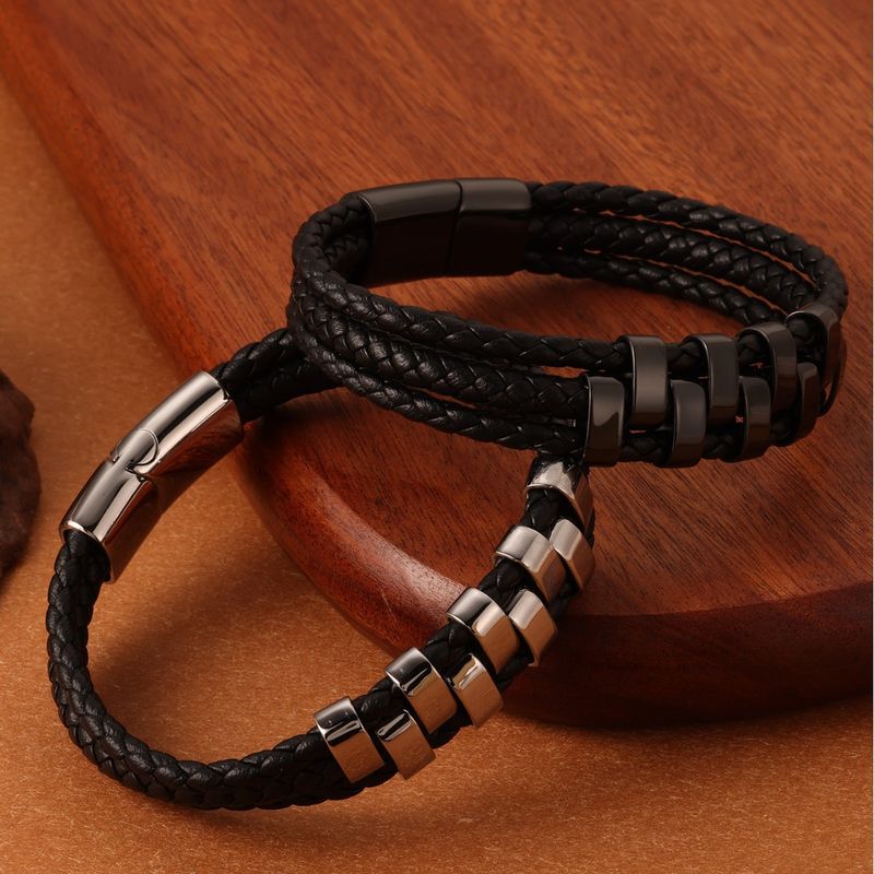 Leather Rope Braided Leather Bracelet Men's Titanium Steel Bracelet Simple Stainless Steel Jewelry Fashion Bracelet