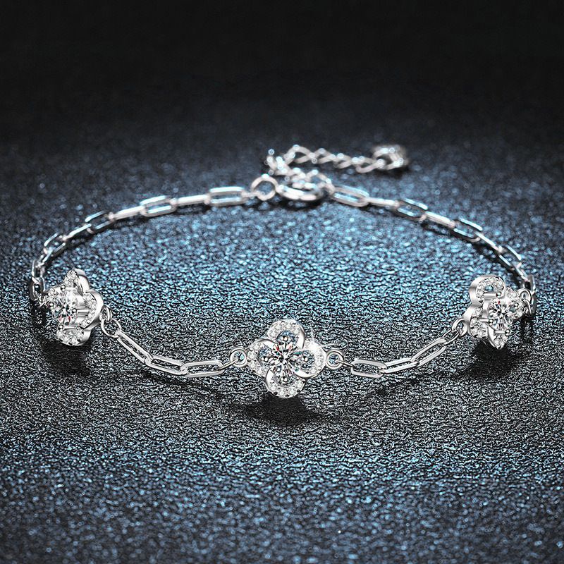 S Pure Silver Moissanite Four-Leaf Clover Bracelet High Version Non-Fading Bracelet Queen's Day Jewelry Live Broadcast