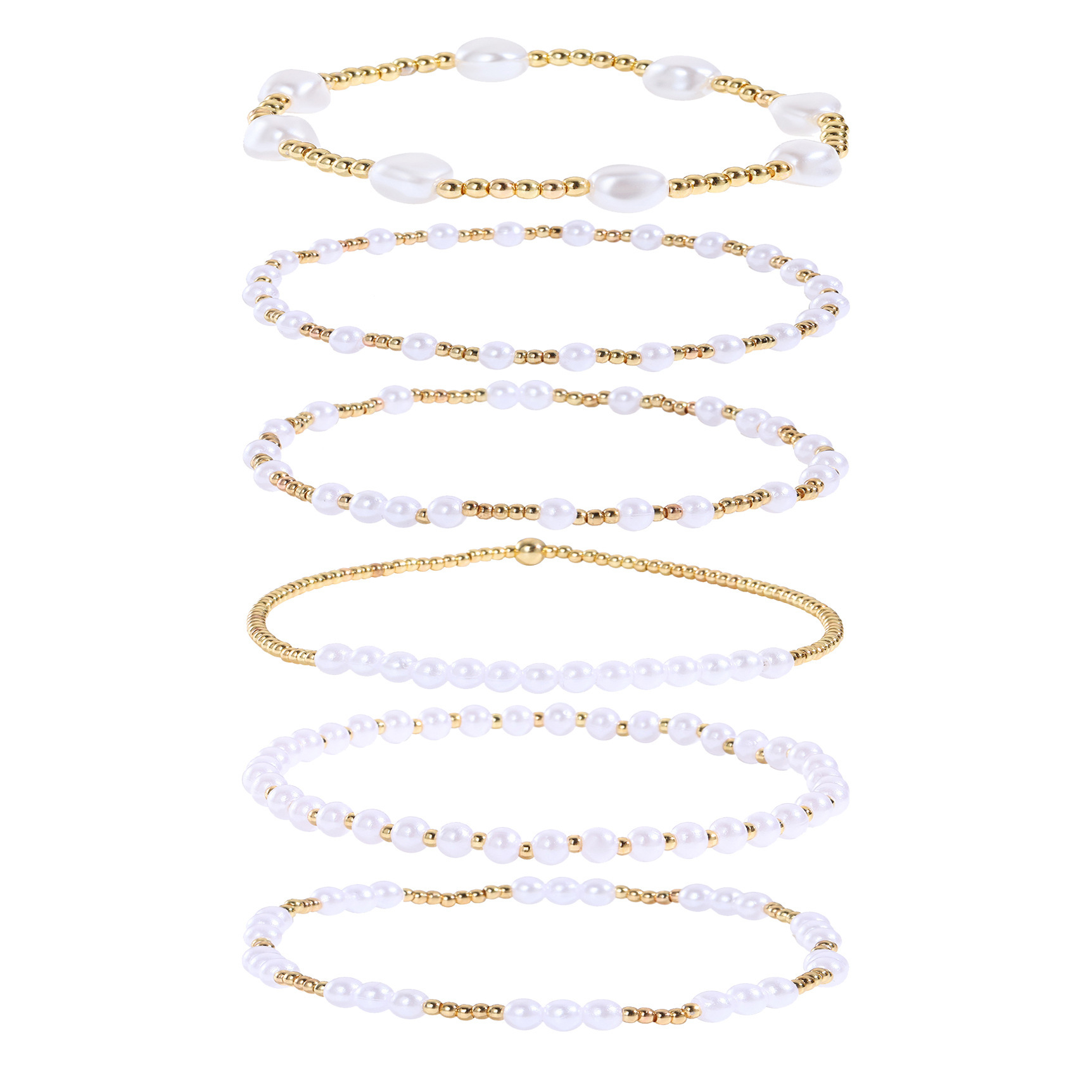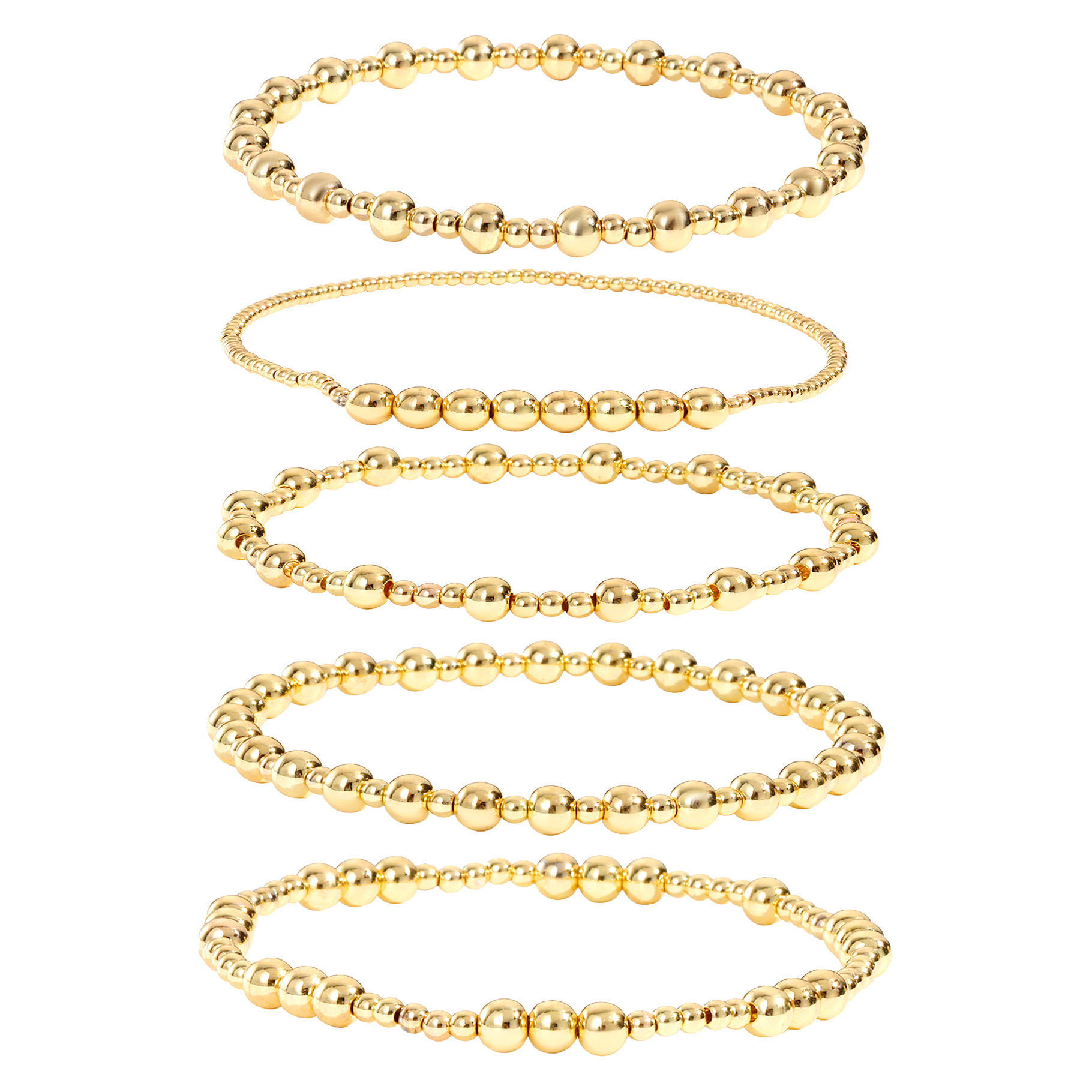 Bracciale da donna in oro 18 carati con perline di rame e bracciale elastico. Set di bracciali.