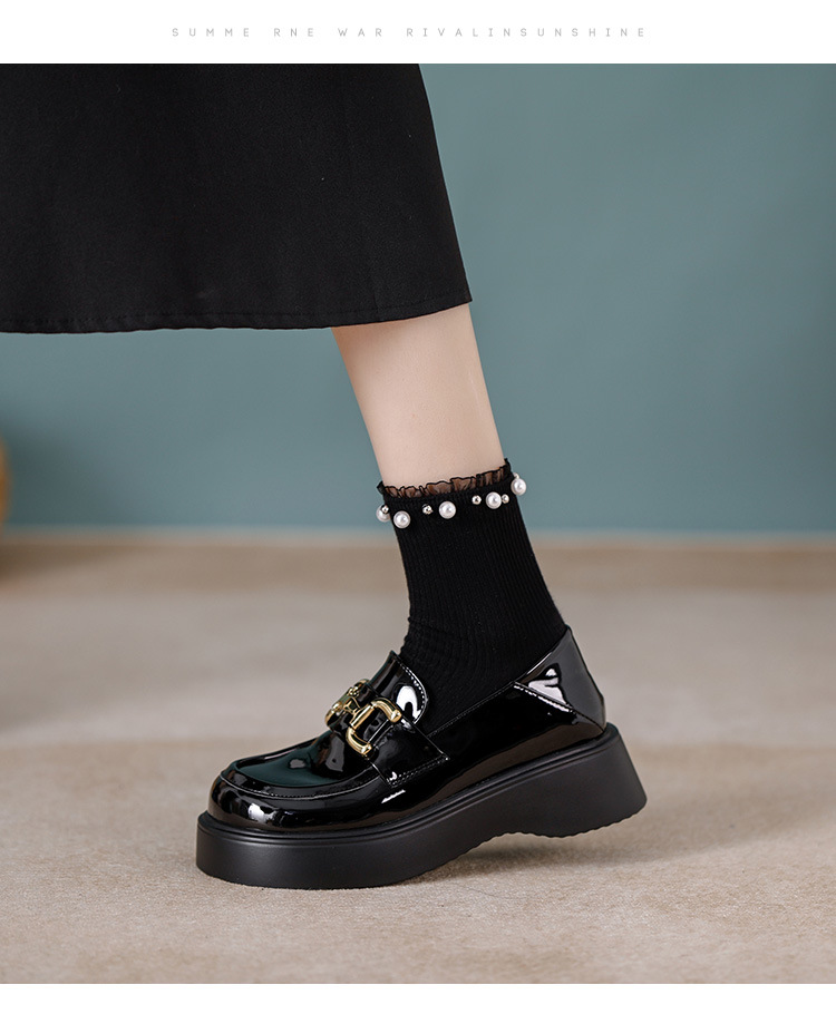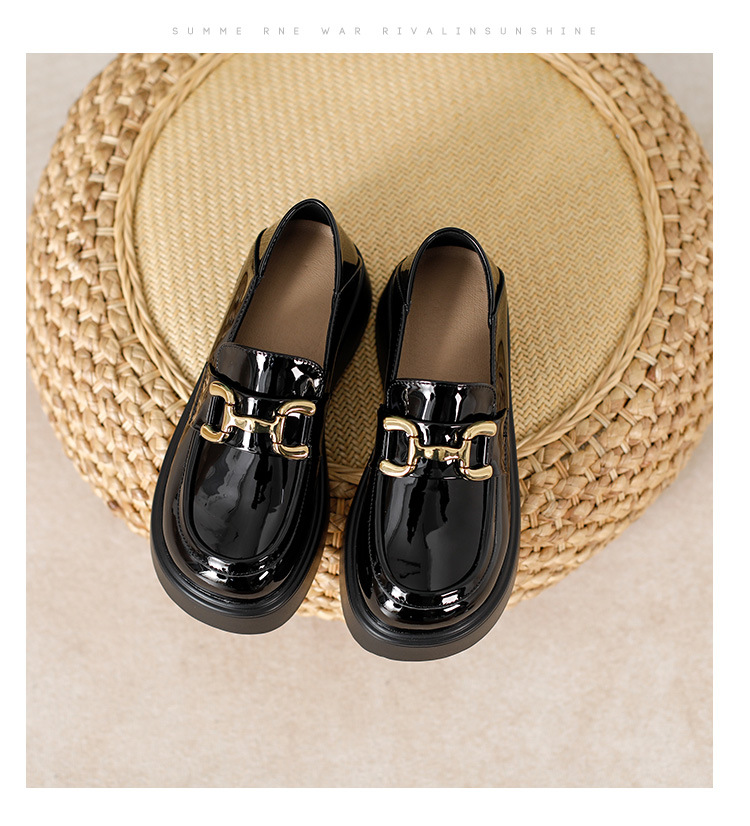 Britannico fibbia in metallo piccola pelle da donna 2024 primavera nuovo nero versatile passo su Lefu per scarpe rialzate interne da donna