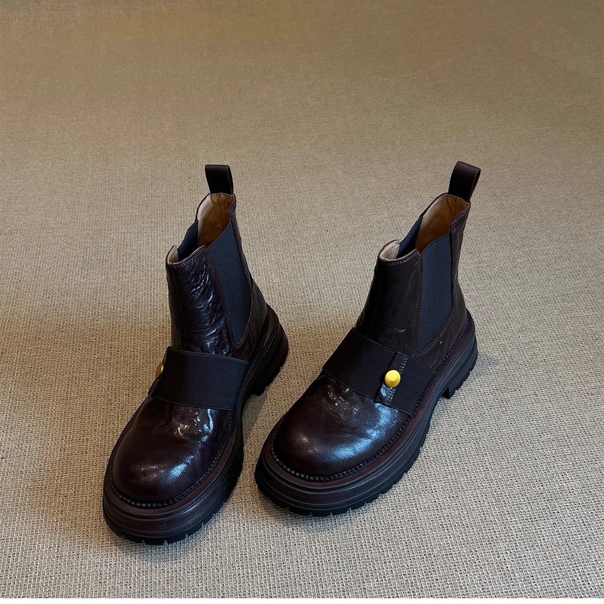 British-style soft leather Chelsea ankle boots for women, chunky heel, 2026 winter new model, medium heel, brown soft sole, versatile Martin boots