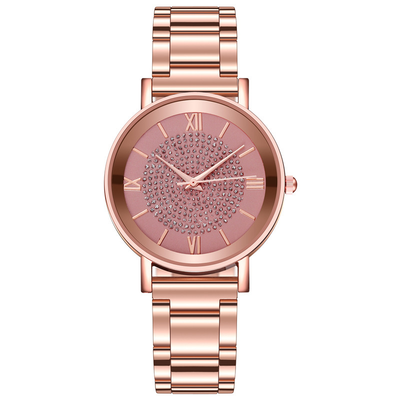 trasmissione completa orologio al quarzo con cintura in acciaio, tendenza della moda per il tempo libero, stella del cielo dal vivo