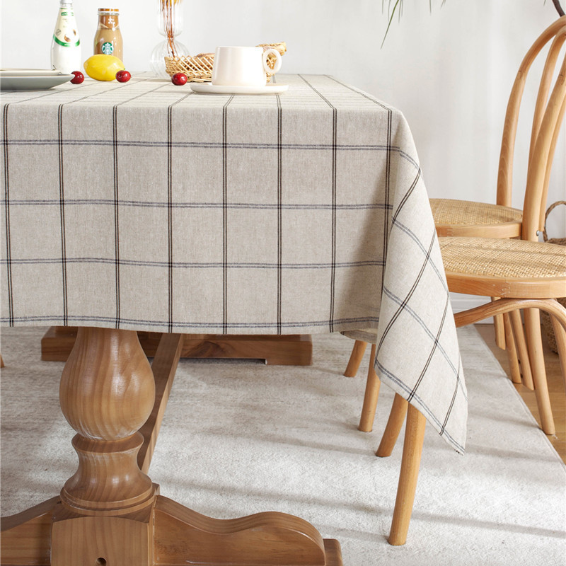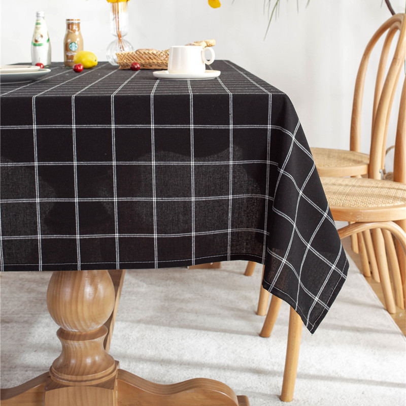 Tovaglia rettangolare geometrica a quadri a doppia linea in cotone-poliestere con bordo arrotolato, ideale per tavoli da pranzo e tavolini da caffè.