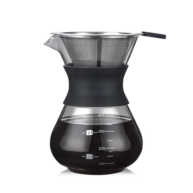 Caffettiera in vetro riutilizzabile Caffettiera manuale Filtro per caffè in acciaio inossidabile Caffettiera a goccia durevole Caffettiera 200/400 ml