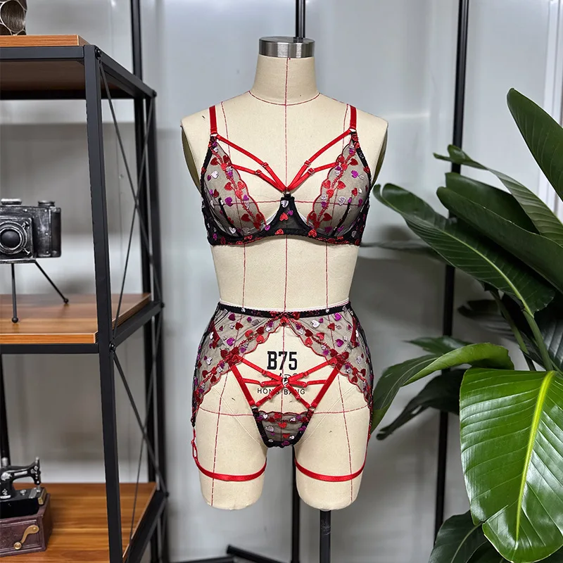 Cage black heart embroidery hollow out nurse uniform japanese mature women sexy lingerie