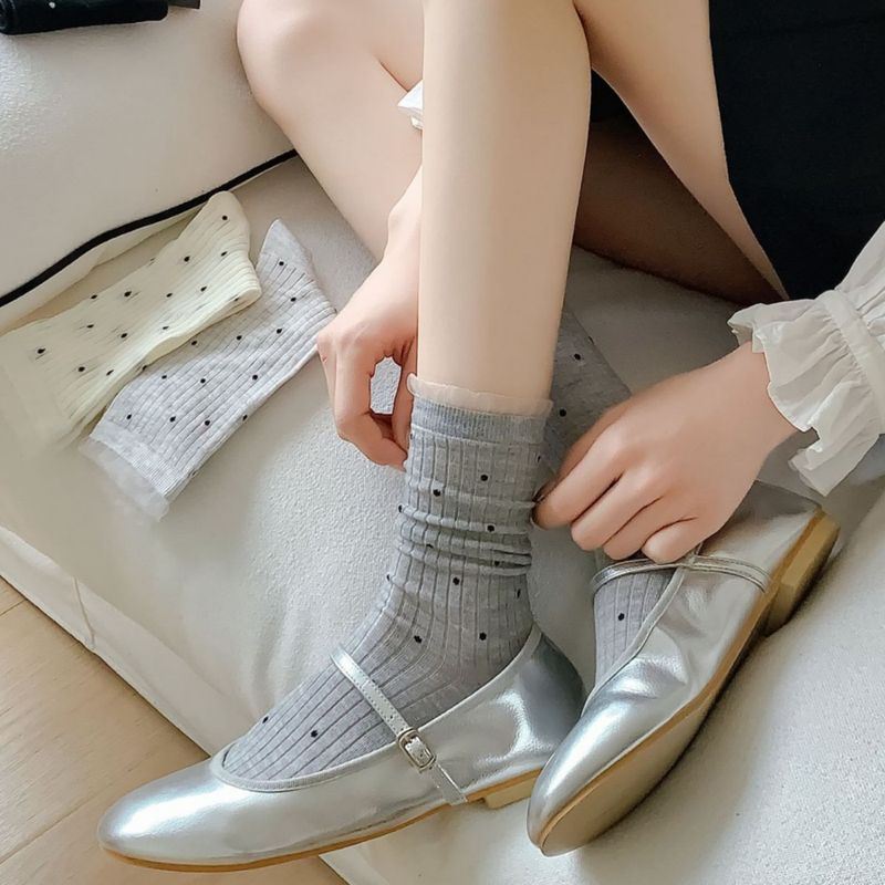 Summer Socks for Women, Mid-Calf Thin Style, Slouch Socks, Miu Style Polka Dot Long Socks, Korean Style Simple Women's Cotton Socks