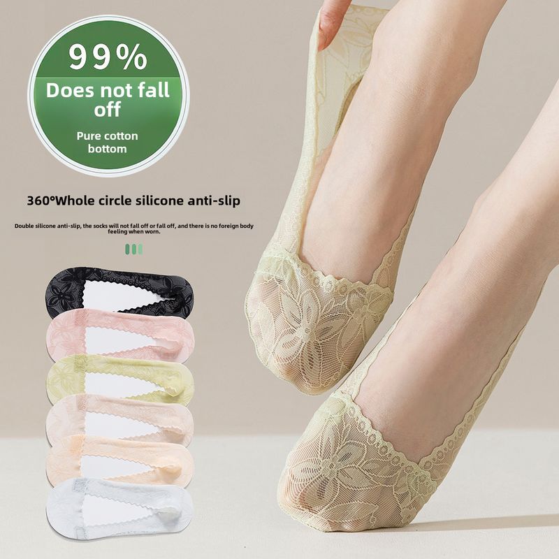 Comfortable Lace Material:Crafted from high-quality lace material, these socks provide a soft and comfortable touch, ensuring you feel good while wearing them. Non-Slip Feature:Equipped with a non-slip feature, these socks ensure your safety when walking on smooth surfaces, reducing the risk of slips and falls. Sweat Absorbent:These socks are designed with sweat absorbent properties, keeping your feet dry and fresh throughout the day, even in warm weather. Odor Resistant:The odor-resistant feature of these socks helps in maintaining a fresh and pleasant smell, eliminating any unpleasant odors. Invisible Design:With their invisible design, these socks are perfect for wearing with various footwear, offering a seamless look while providing comfort and protection. Wholesale Availability:These socks are available for wholesale , making them an ideal choice for retailers or large groups looking for quality footwear at a competitive price.