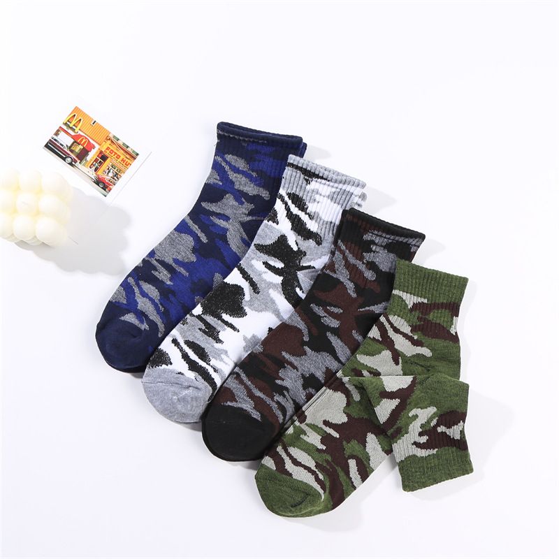 Camouflage Socks Men's Mid-Calf Socks High Tube Cotton Socks Autumn Winter Warm Jacquard Mid-Length Trendy Brand Trendy Short Socks