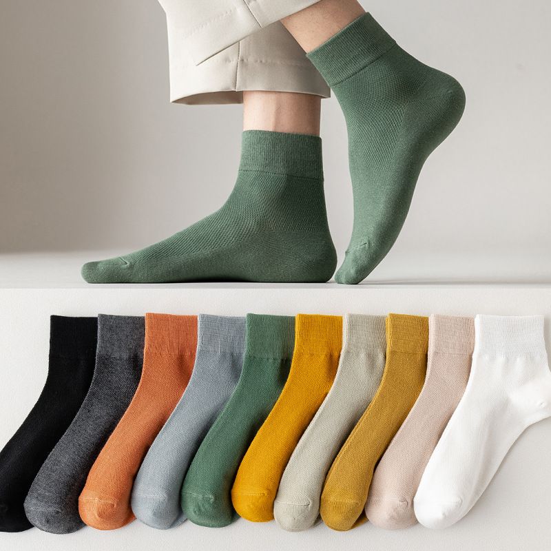 Calzini corti da uomo in cotone, sottili, a metà polpaccio, traspiranti, in mesh, casual, tinta unita, per studenti, primavera estate 2025d