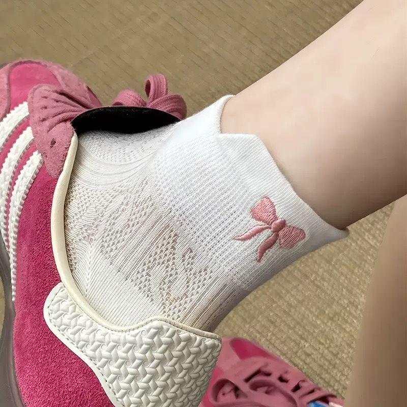 Calzini corti in cotone sottile stile balletto con fiocco ricamato, calzini estivi per bambini