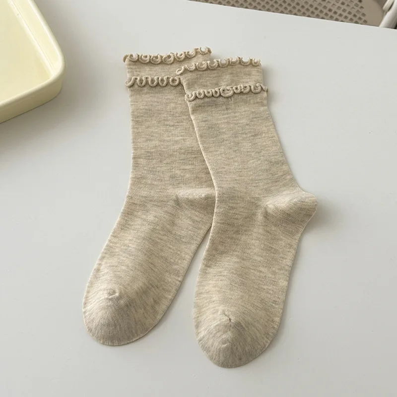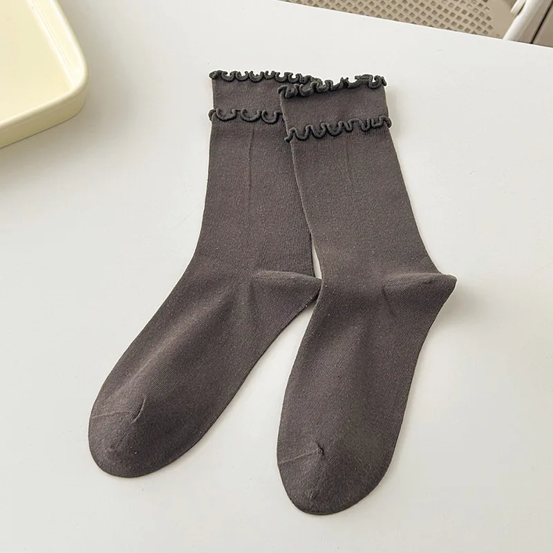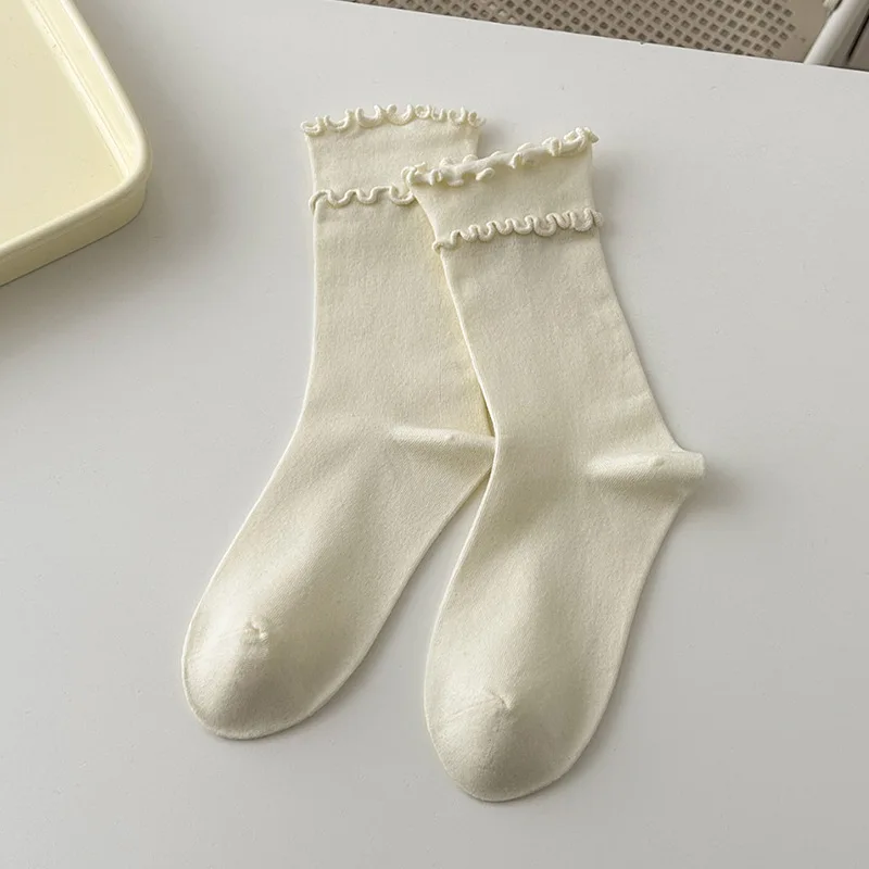 Wholesale comfortable cotton tube socks for women, spring style for girls, cute ruffle design, suitable for daily use, knitted crew length, solid color