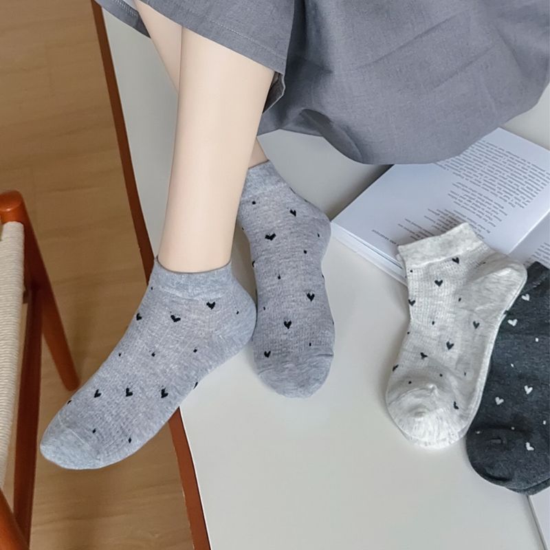 Calzini da donna a forma di cuore, sottili, traspiranti e traspiranti, calzini corti bassi primaverili ed estivi, in cotone grigio versatile_voghion.com