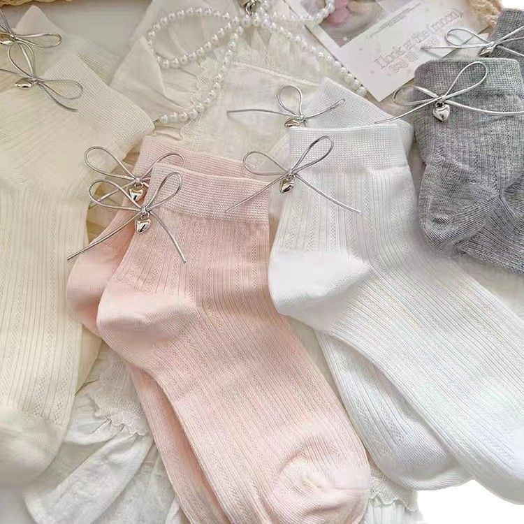Summer Thin Bowknot Socks for Women Trendy Ins Korean Style Versatile Short Tube Socks High Elastic Comfortable Women's Socks