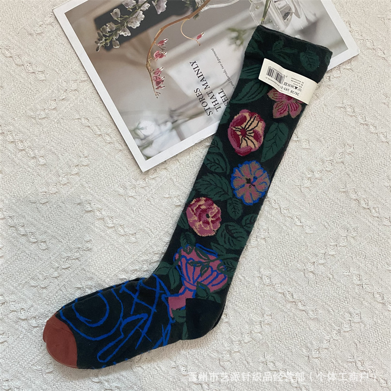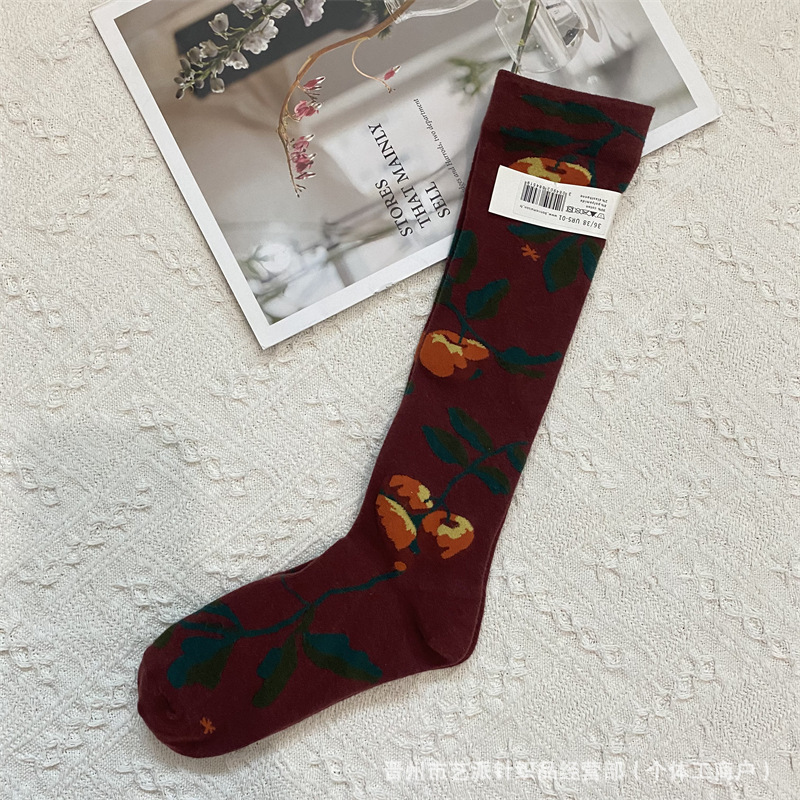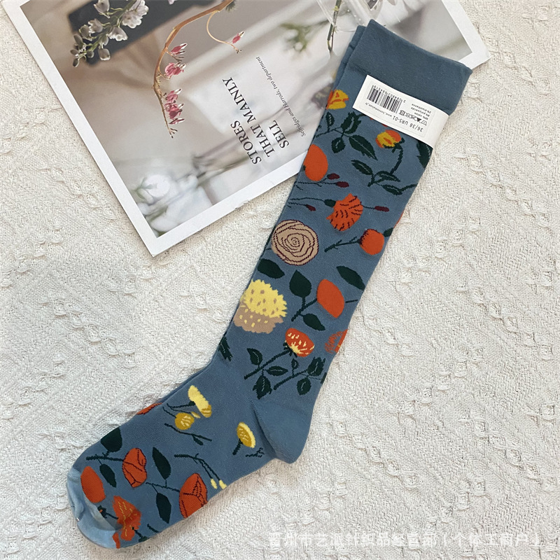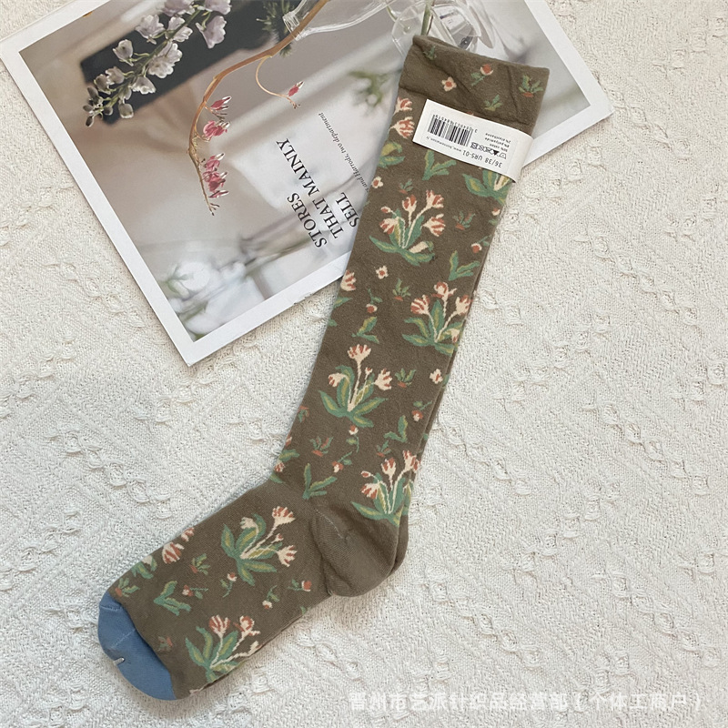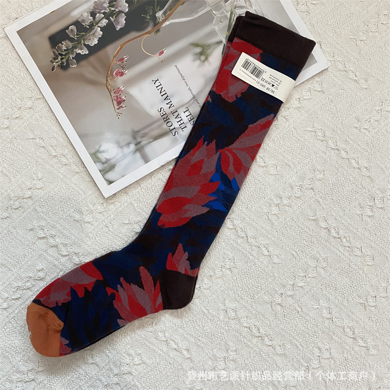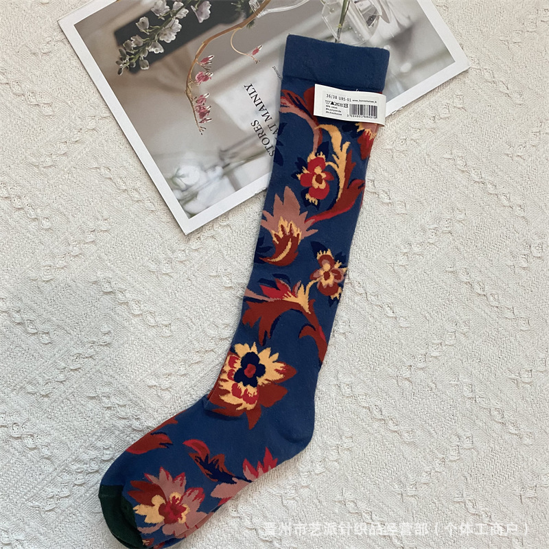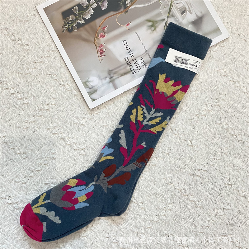 Calzini floreali alla moda con stampa a olio BM francese, da 2025d, sopra il ginocchio, con polpaccio.