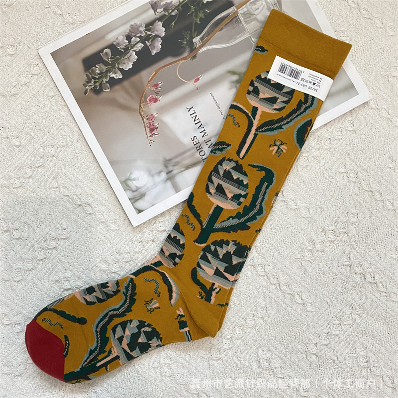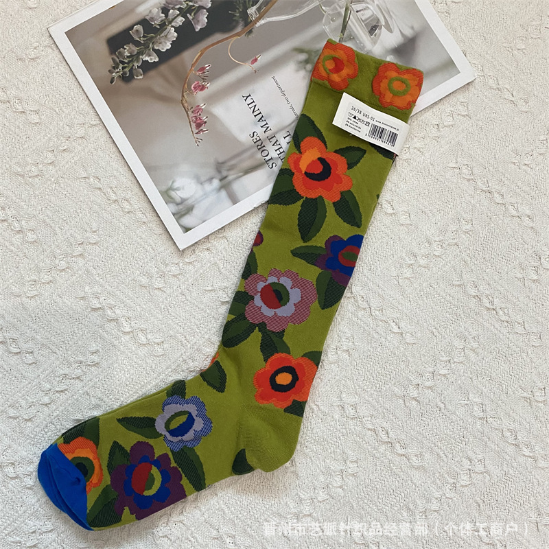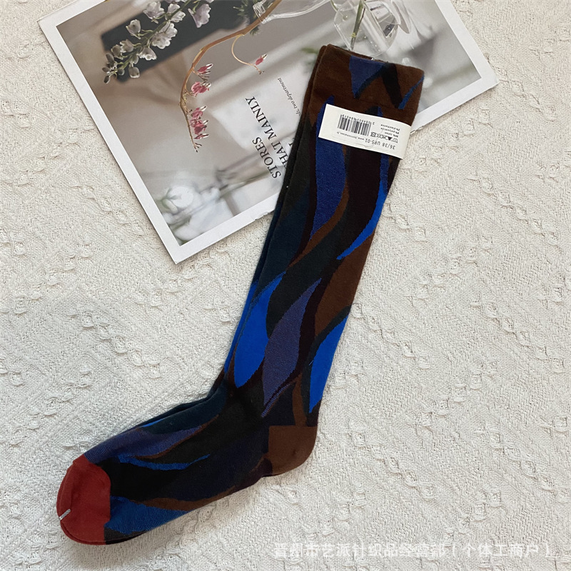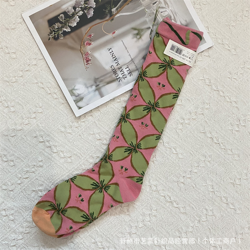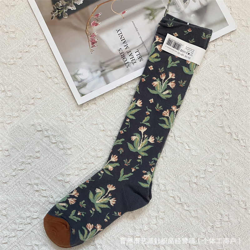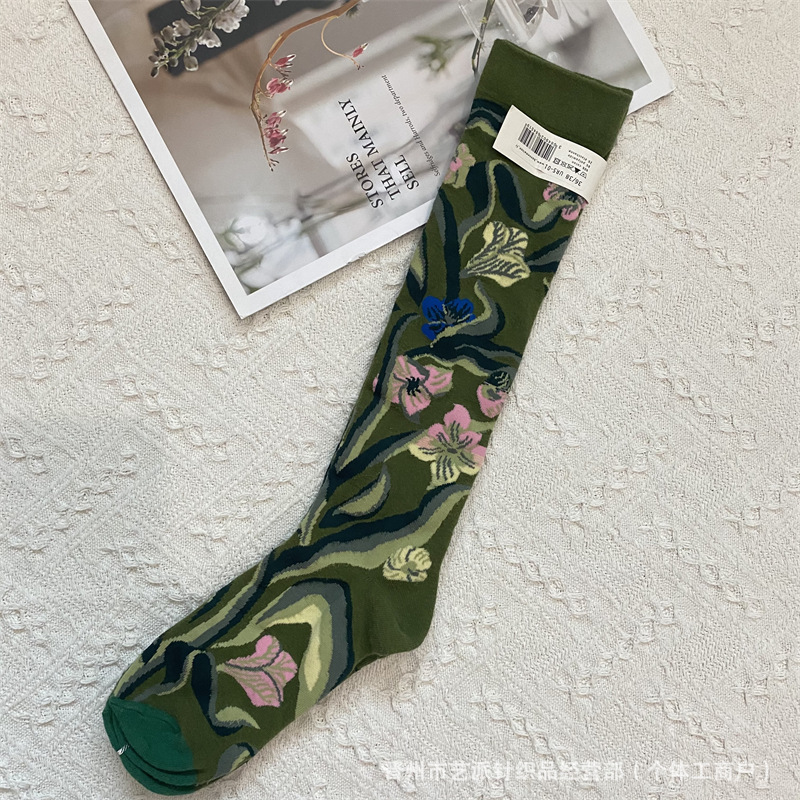 Calzini floreali alla moda con stampa a olio BM francese, da 2025d, sopra il ginocchio, con polpaccio.