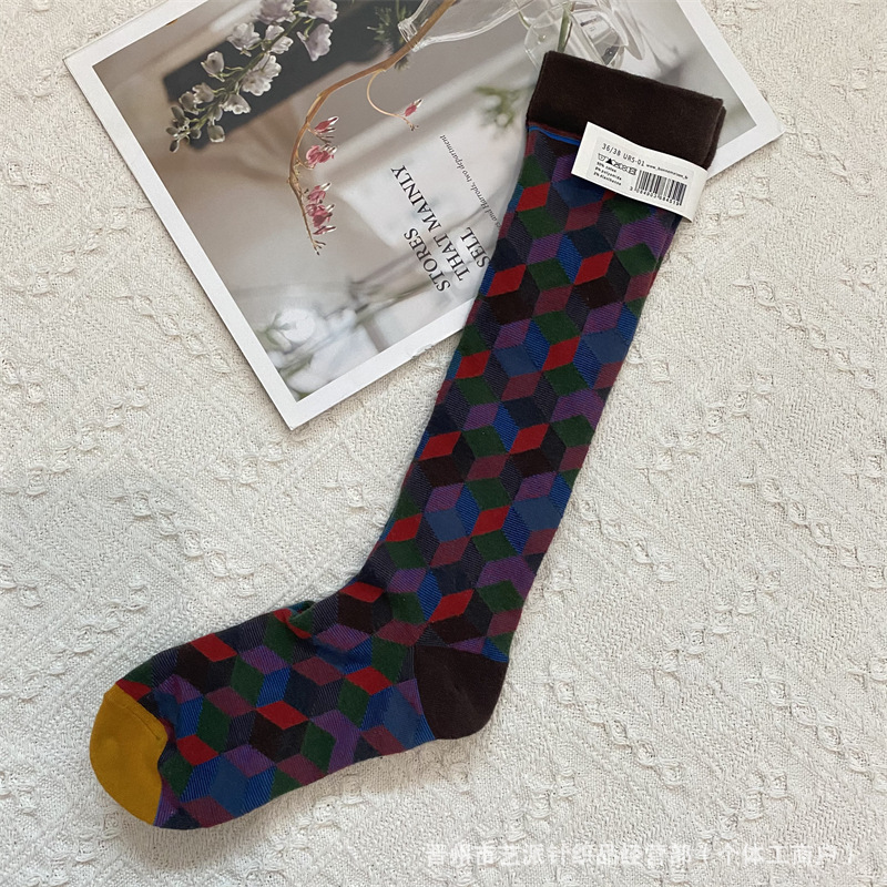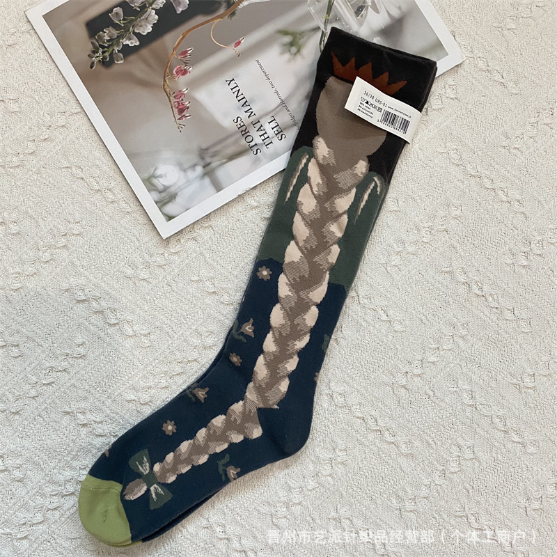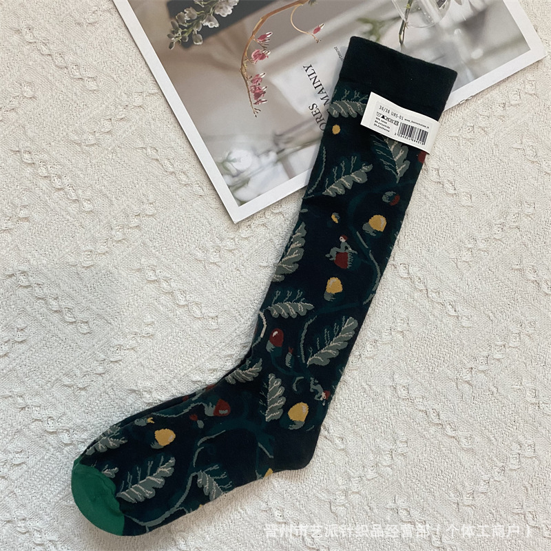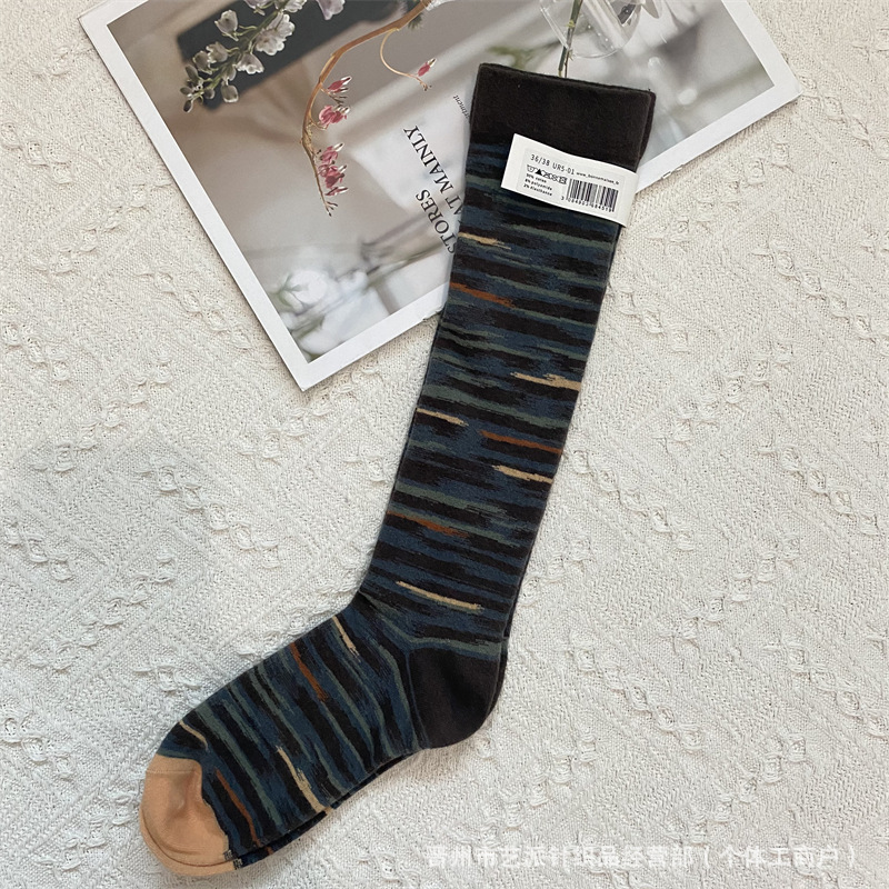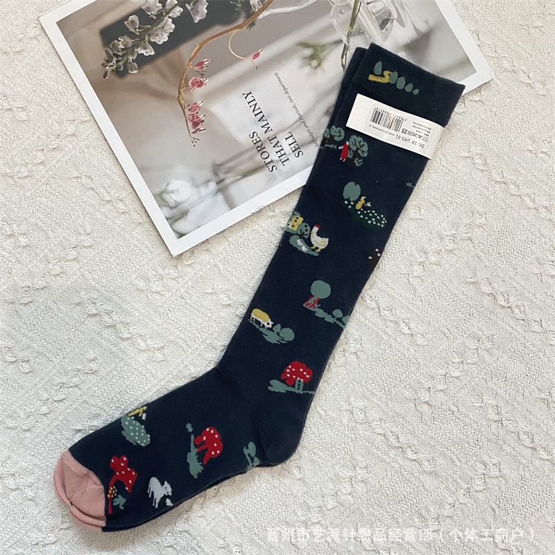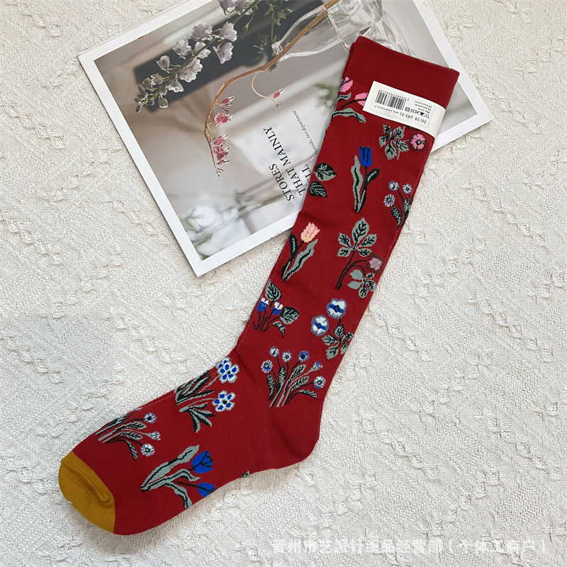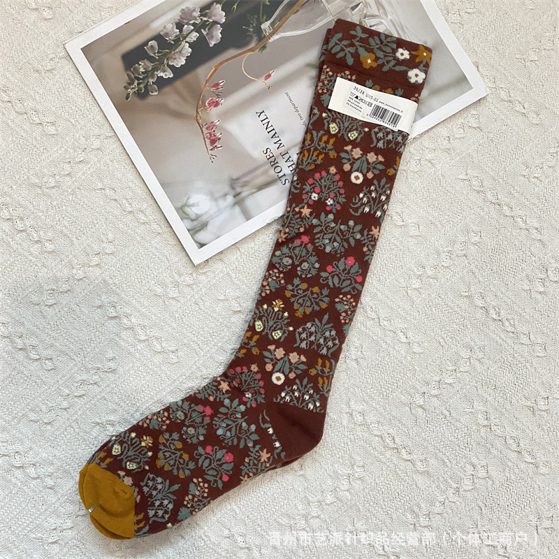Calzini floreali alla moda con stampa a olio BM francese, da 2025d, sopra il ginocchio, con polpaccio.