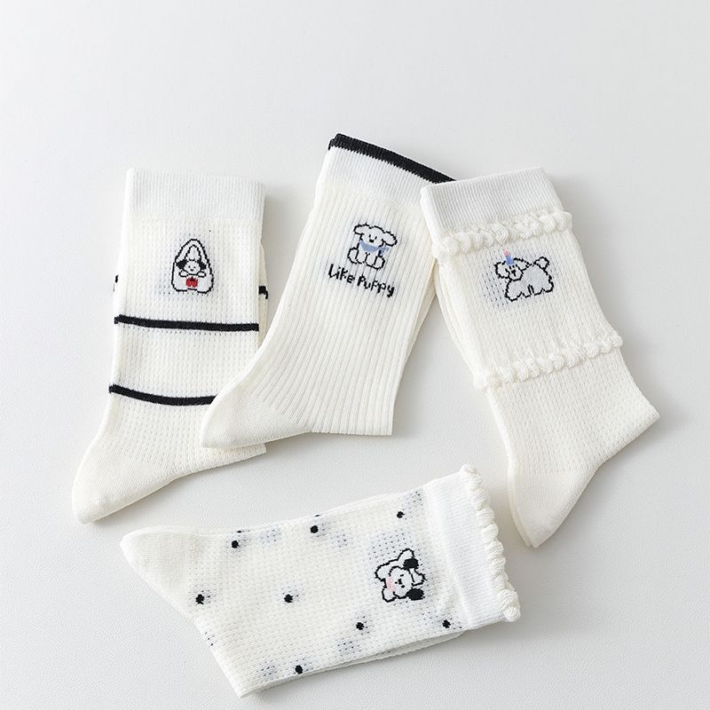 Cartoon Socks for Women Seamless Mid-Calf Socks Ins Style Spring Summer Cute College Style Puppy Striped Long Socks