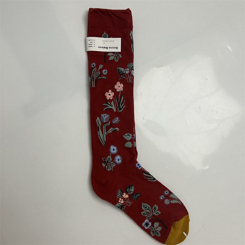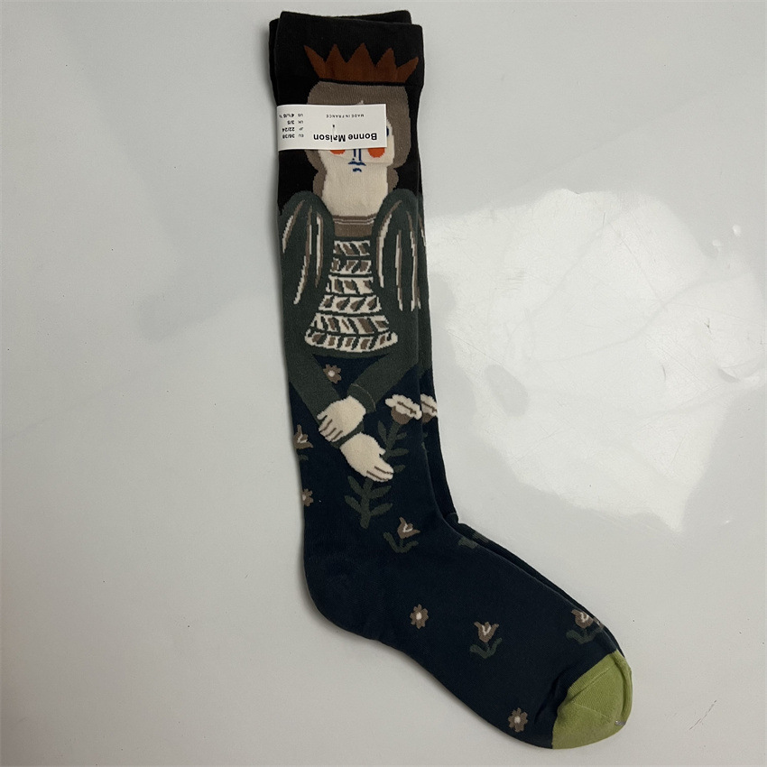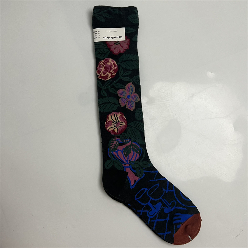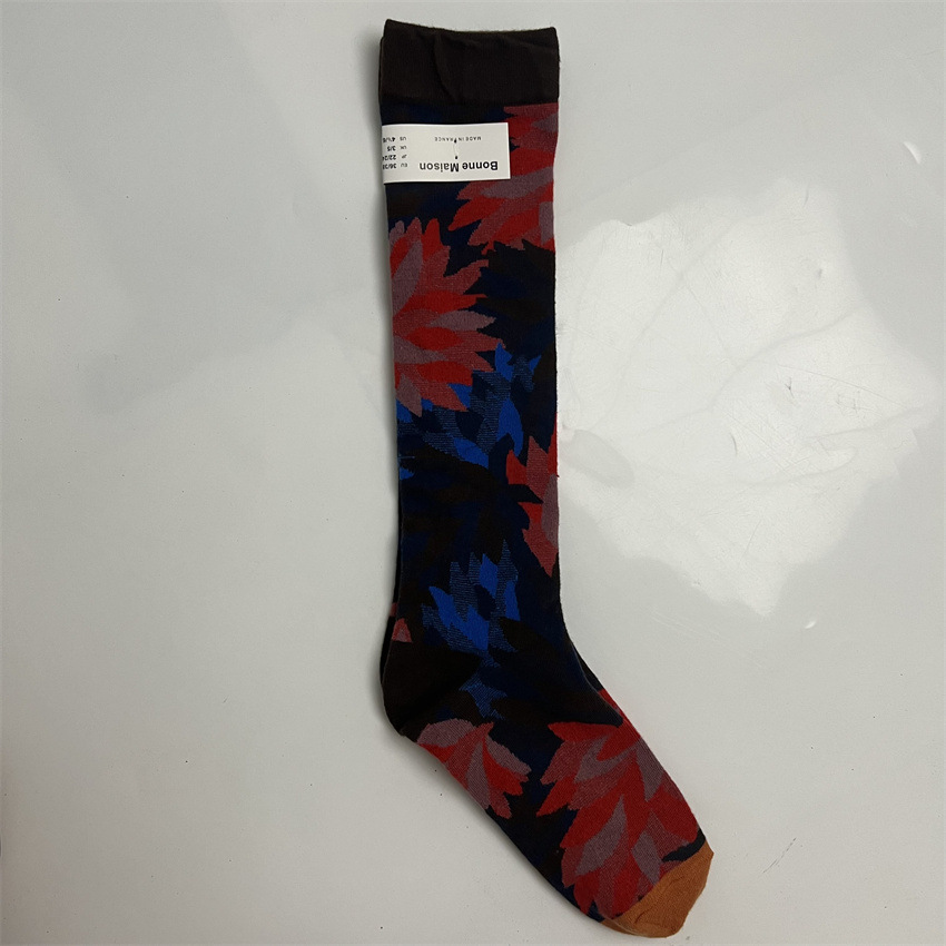 French BOONE MAISON Autumn Winter Mid-Calf Cotton Socks Knee-High Artistic Abstract Woven Pattern Long Happy Socks