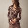 The delicate botanical motifs capture Renaissance garden charm, while the contemporary cut flatters every curve.