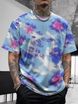 Camicia a maniche corte comoda e versatile da uomo, con stampa tie-dye, graffiti hip-hop e moda artistica estiva