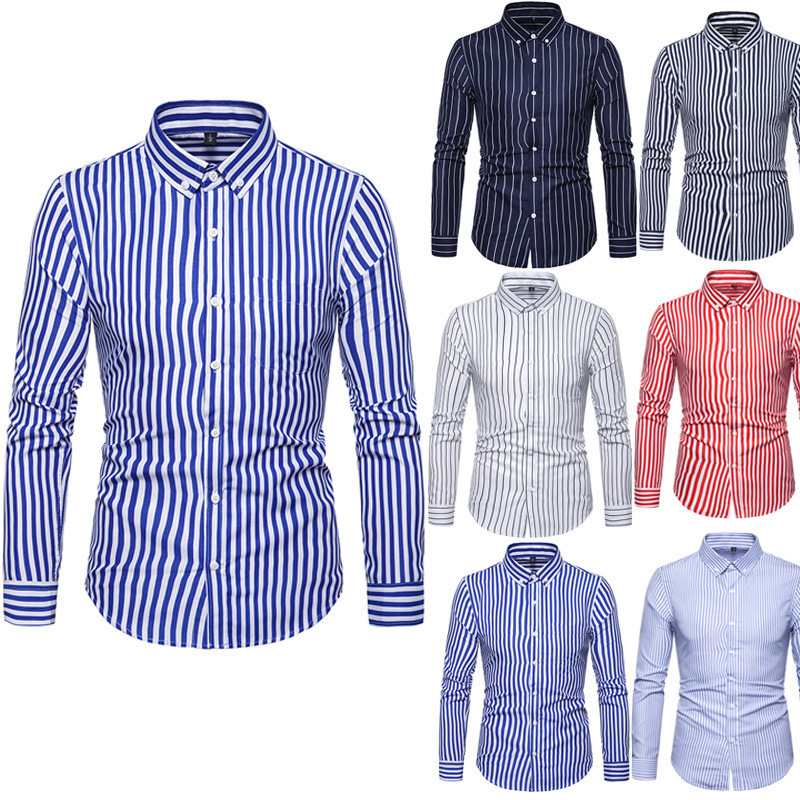 2023 autumn slim men's shirt long sleeved shirt casual shirt men's striped long sleeved shirt
