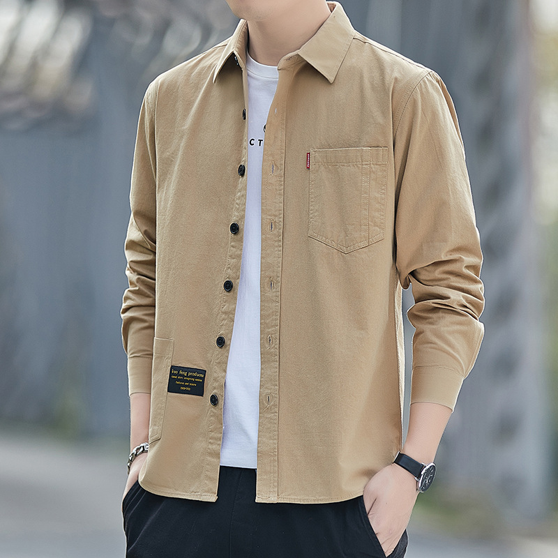 Long sleeved shirt new for spring 2025, men's pure cotton workwear trend, cool and casual workwear for men