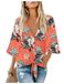 Camicia annodata con scollo a V in chiffon largo, con protezione solare, per abbigliamento estivo da donna