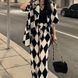 Korean Style Casual Versatile Black and White Checkered Suit Summer Thin Slimming Diamond Check Blazer Shirt Wide-Leg Pants Set for Women