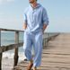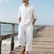 Camicia con cappuccio e pantaloni lunghi larghi in lino da uomo in stile americano, stile primaverile e autunnale, casual da spiaggia