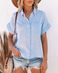 Camicia da donna in cotone e lino caldo, manica corta, con risvolto e fodera con bottoni