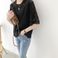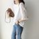 Camicia da donna squisita con scollo rotondo e maniche a cinque punte, in maglia, estiva, nuova, con cuciture in pizzo cavo, traspirante