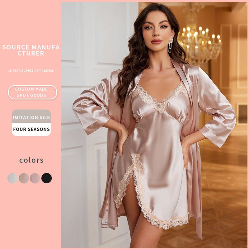 Sexy Nightdress for Women Summer Thin Breathable Strap Dress Robe Set Loungewear New Ice Silk Pajamas