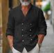 Men's plus size double breasted shirt, home casual fashion stand up collar shirt, cotton linen long sleeved cardigan jacket