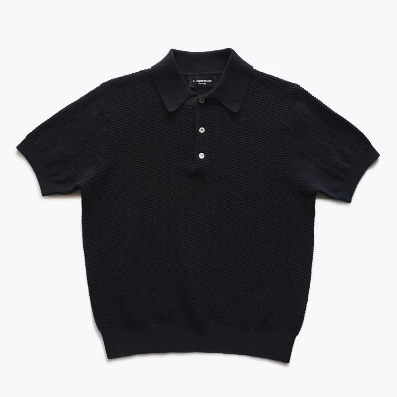 Same Style Italian Cabinet Imported Combed Cotton Needle Wave Texture Men's Short Sleeve Shirt Casual Turn-down Collar Black