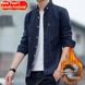 Men's long sleeved shirt with thick velvet and Korean style slim fit striped men's shirt for autumn casual trend jacket