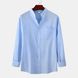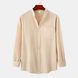 Camicia da uomo ampia a maniche lunghe in cardigan con colletto alla coreana in lino tinta unita