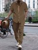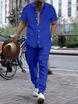 2024 Summer Men's Shirt Casual Loose Short sleeved Long Pants Beach Set