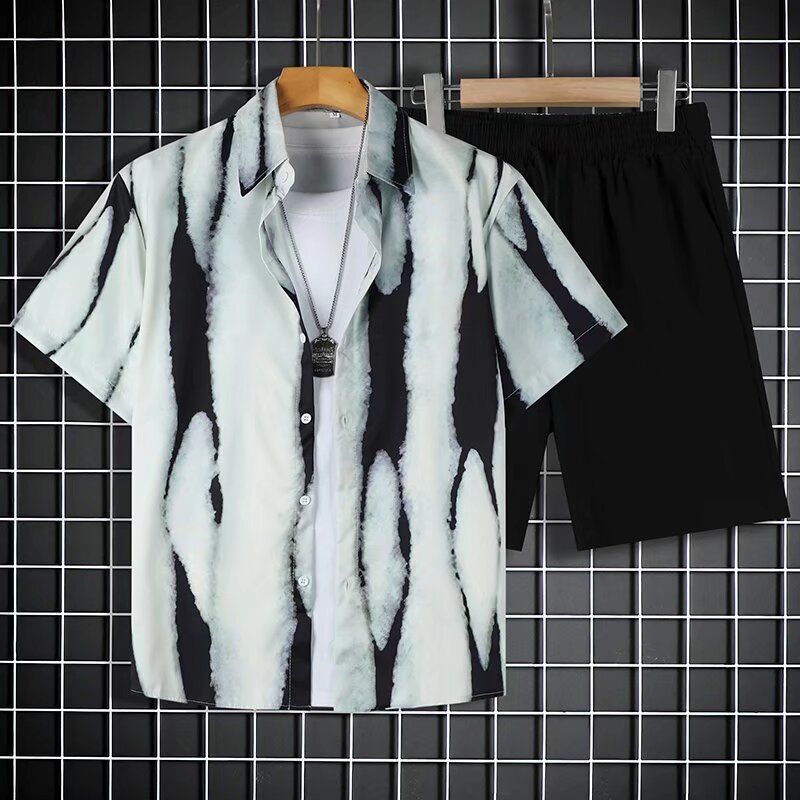 Ice Silk Set Men's Quick Drying Summer Short sleeved Shirt Trendy Large Size Colored Beach Shorts Couple Paired Two Piece Set