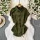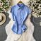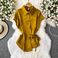 Camicia estiva da donna in stile maturo leggero, di alta qualità, con risvolto in jacquard di raso, a maniche corte, con laccetto in vita e top snellente