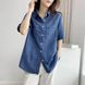 Camicia estiva in tencel blu, sottile in denim, con protezione solare
