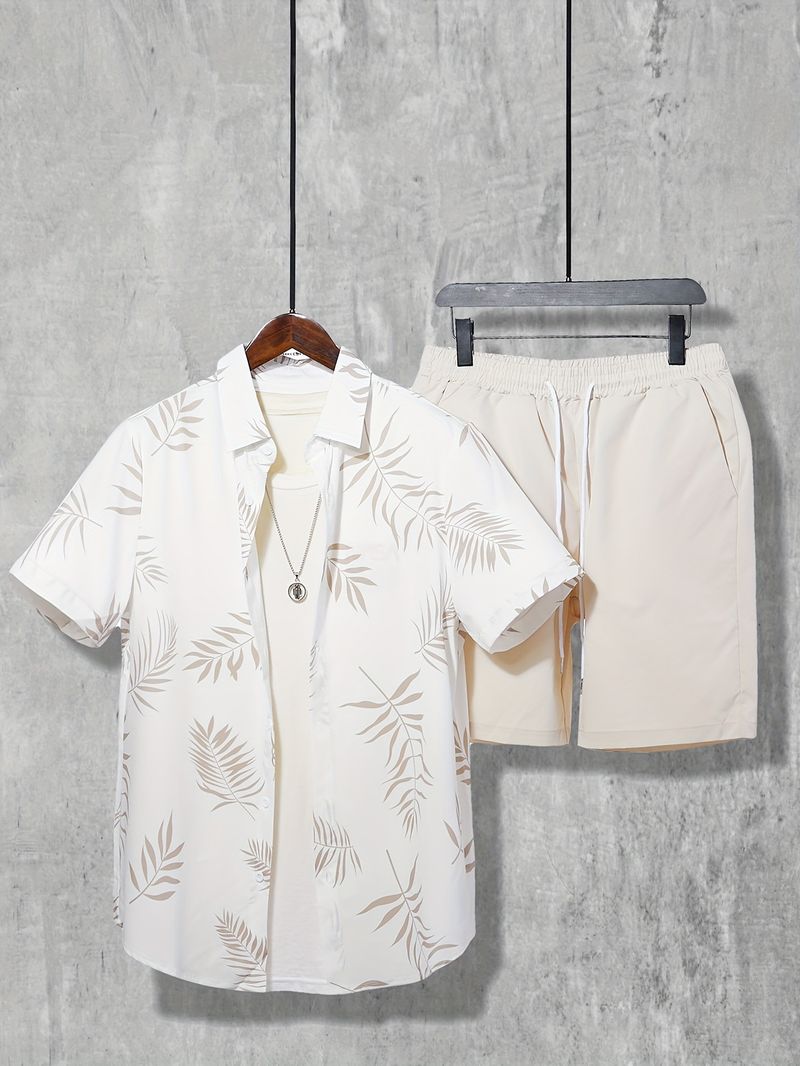 Camicia Hawaii di qualità imbattibile per uomo, casual, da vacanza, con pantaloncini a maniche corte, set da due pezzi