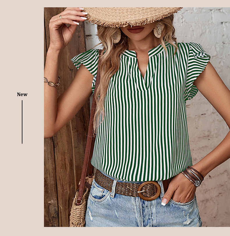 Camicia senza maniche con volant temperamento a righe