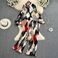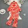 Camicia stampata ampia con maniche a pipistrello e temperamento celebrità da donna, pantaloni larghi a pieghe a vita alta in due pezzi