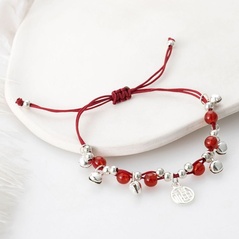 Hot selling handmade ethnic wind chime bell lucky character pendant with adjustable red rope bracelet