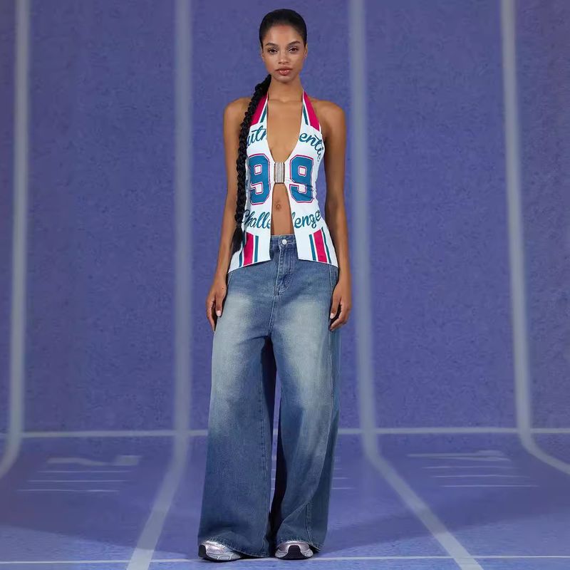 Sexy Hot Girl New Football Element Printed Metal Connection Halter Neck Tank Top Niche Design Sense Top